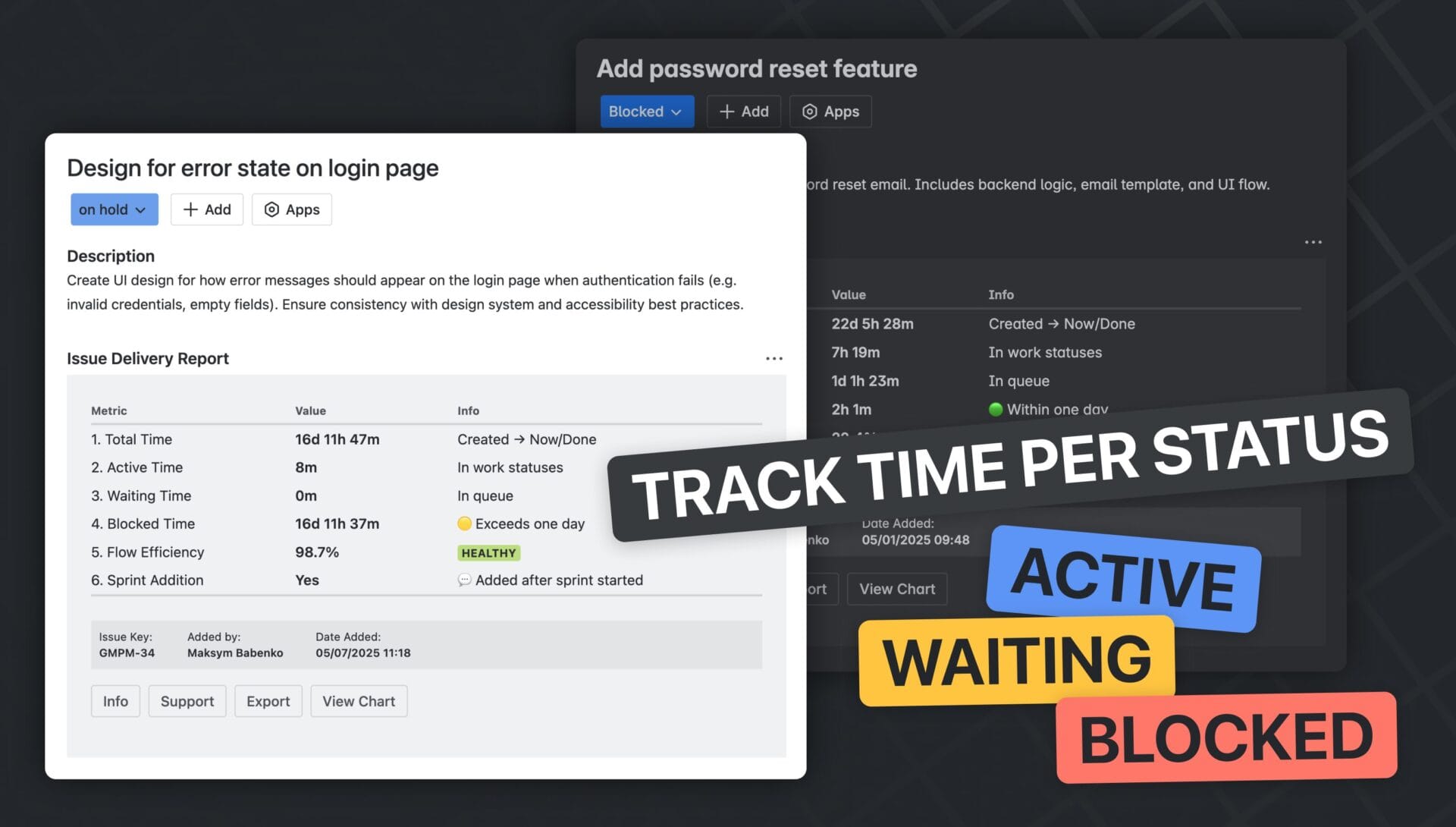 Status names alone do not explain how much time work actually spends actively progressing vs. waiting or being blocked.
