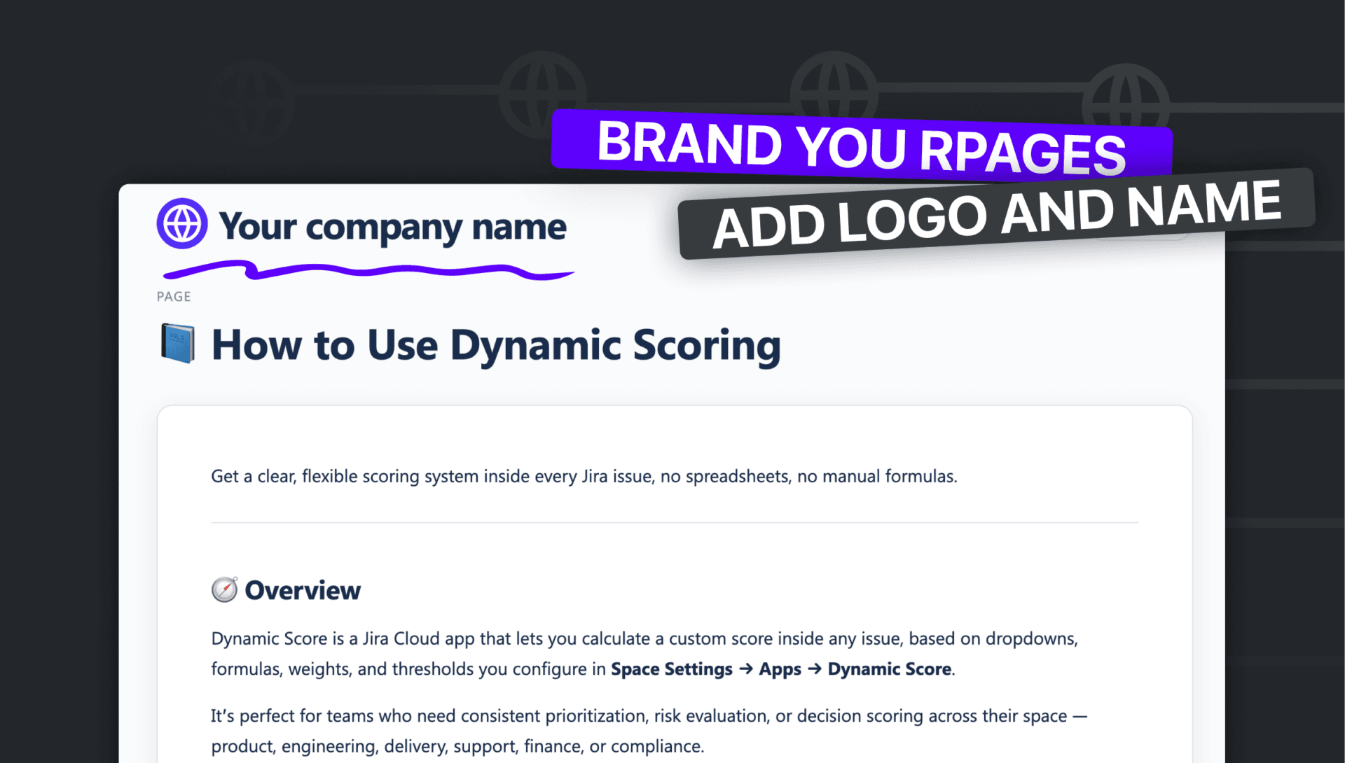 Add your company name and logo so public Confluence documentation feels connected to your product and brand.