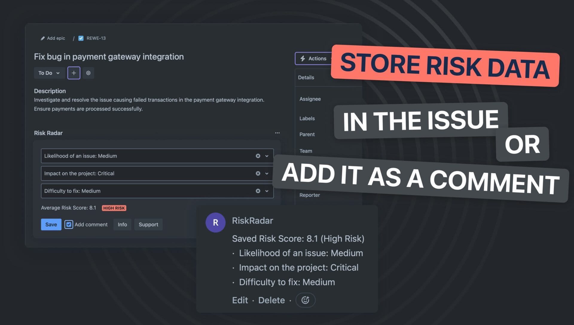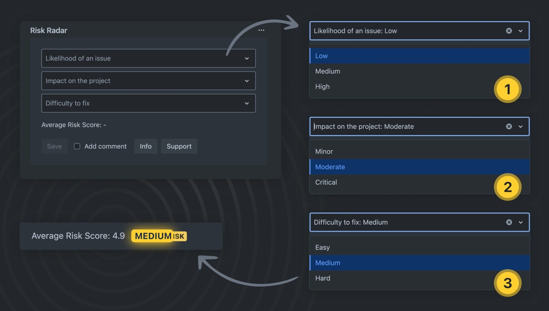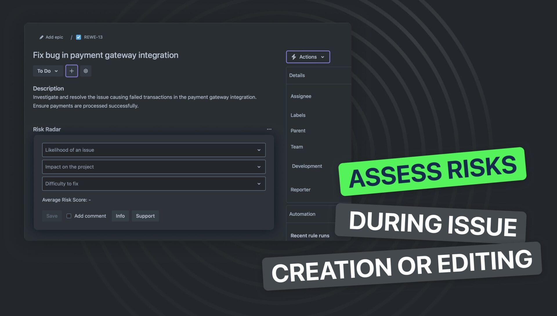 Risk Radar for Jira brings lightweight risk scoring directly into the issue view, allowing teams to evaluate probability, impact, and complexity in seconds.